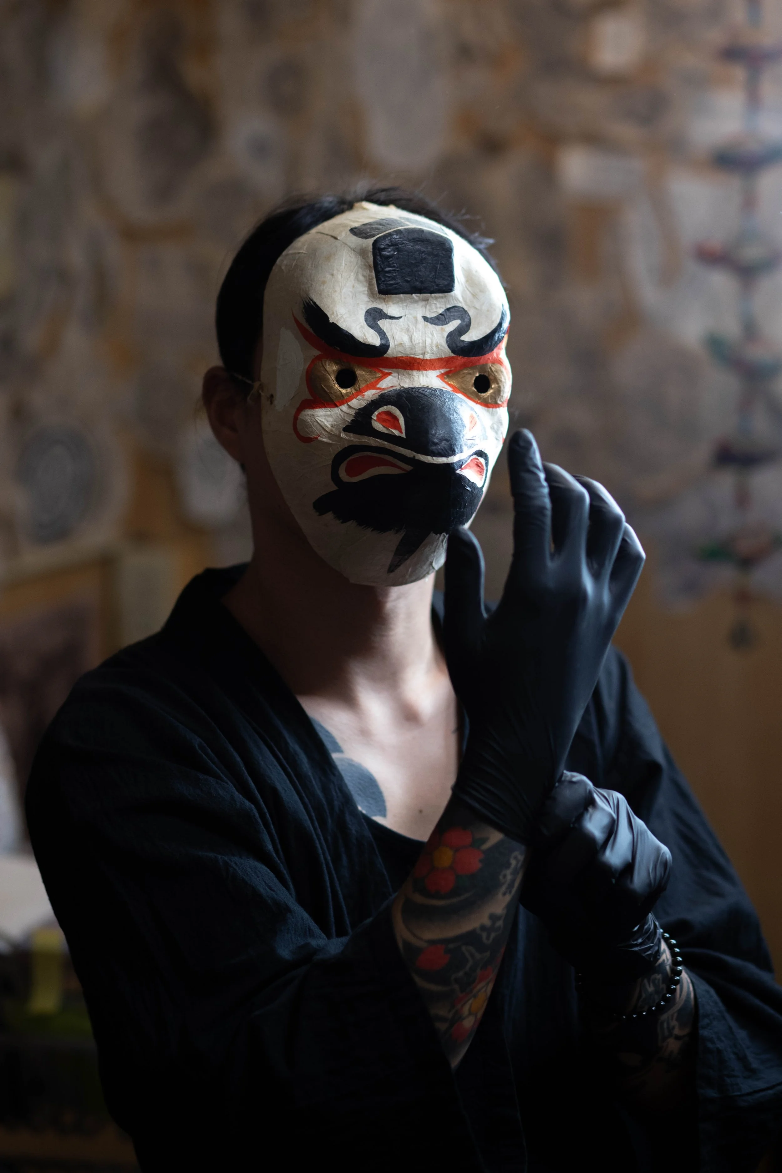 keywords: tokyo, japan, tattoo artist, japanese, moody, portraits, mask, identity, brand